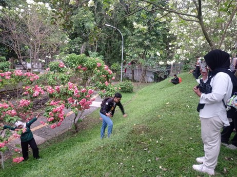 Komang menambahkan bahwa Wisdom Park dipilih sebagai lokasi kegiatan karena memiliki keragaman jenis dan ukuran pohon serta vegetasi yang bervariasi. Selain itu, kawasan ini memiliki variasi kontur dari datar hingga sedikit bergelombang, sehingga sangat mendukung kegiatan pengukuran kontur dan penerapan konsep peta topografi dan garis kontur secara langsung.