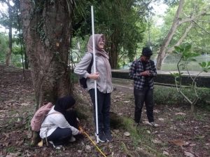 Komang menambahkan bahwa Wisdom Park dipilih sebagai lokasi kegiatan karena memiliki keragaman jenis dan ukuran pohon serta vegetasi yang bervariasi. Selain itu, kawasan ini memiliki variasi kontur dari datar hingga sedikit bergelombang, sehingga sangat mendukung kegiatan pengukuran kontur dan penerapan konsep peta topografi dan garis kontur secara langsung.